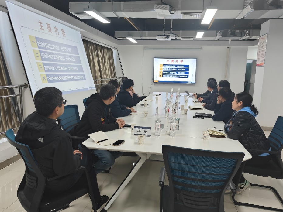 On the morning of November 28, a delegation from the Entrepreneurship Education College of Jiangxi University of Finance and Economics visited our School to conduct in-depth research and exchange on topics of entrepreneurship education and the cultivation of innovative and entrepreneurial talents. The meeting was held in Room 601 of the School of Entrepreneurship, with Dean Yu Ping, Deputy Deans Ai Liang and Peng Huatao, and the directors of relevant departments participating in the meeting.
