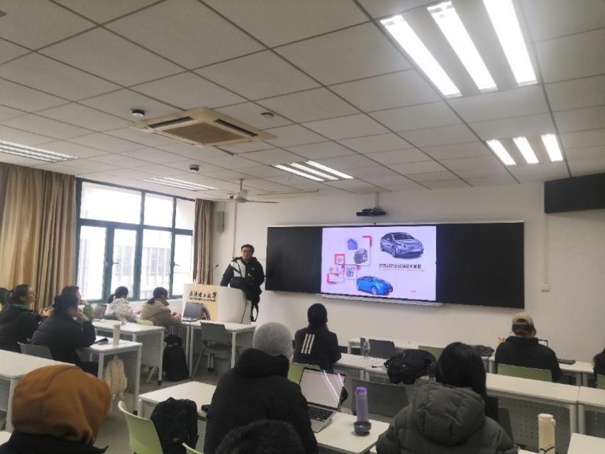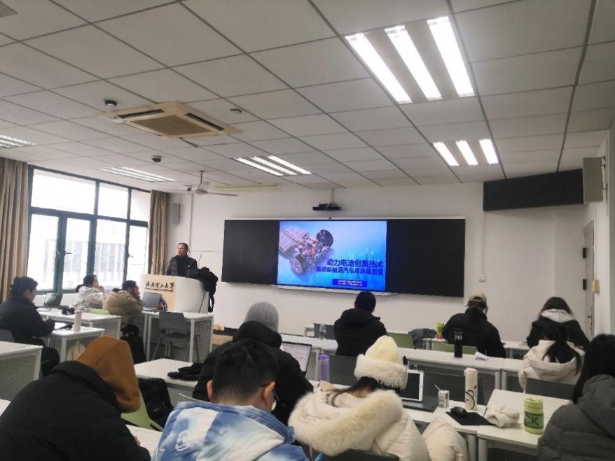 On December 26, three senior engineers from SAIC-GM, Huang Guanyu, Zhang Xing, and Yu Zizhao, were invited to the School of Entrepreneurship at Wuhan University of Technology to deliver a professional knowledge lecture on cutting-edge new energy vehicle (NEV) technologies. The lecture provided a valuable opportunity for students to enjoy an enriching knowledge feast.