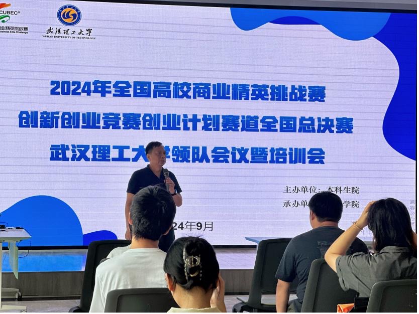 9月11日,2024年全国高校商业精英挑战赛创新创业竞赛创业计划赛道全国总决赛领队会议暨赛前培训会在大学生创新创业园一楼大厅成功举办。此次活动旨在帮助参赛团队掌握线上答辩技巧、了解比赛流程及注意事项,确保各团队能够以最佳状态迎接全国总决赛的挑战。