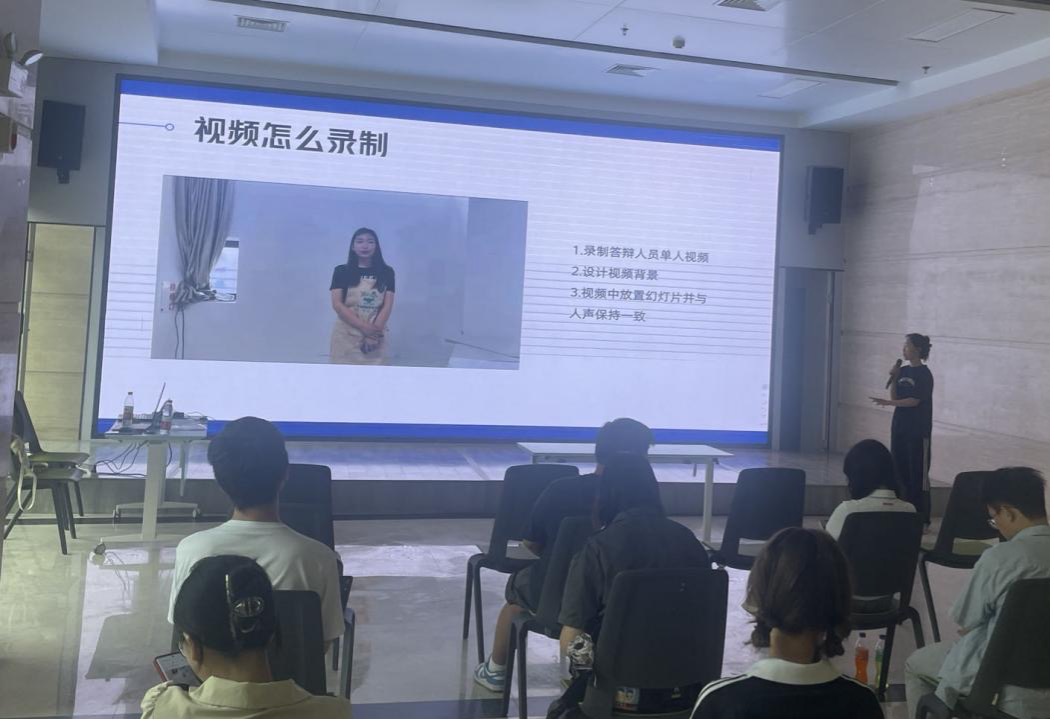 随后,培训正式开始。培训老师为各团队详细讲解了线上答辩的流程与注意事项,特别针对答辩中的逻辑表达、问题应对等环节进行了深入分析。各团队成员认真听取了答辩技巧的指导,并积极与培训老师互动,提出了自己在准备过程中遇到的疑问。培训老师耐心解答,帮助团队更好地完善材料、提升展示效果。