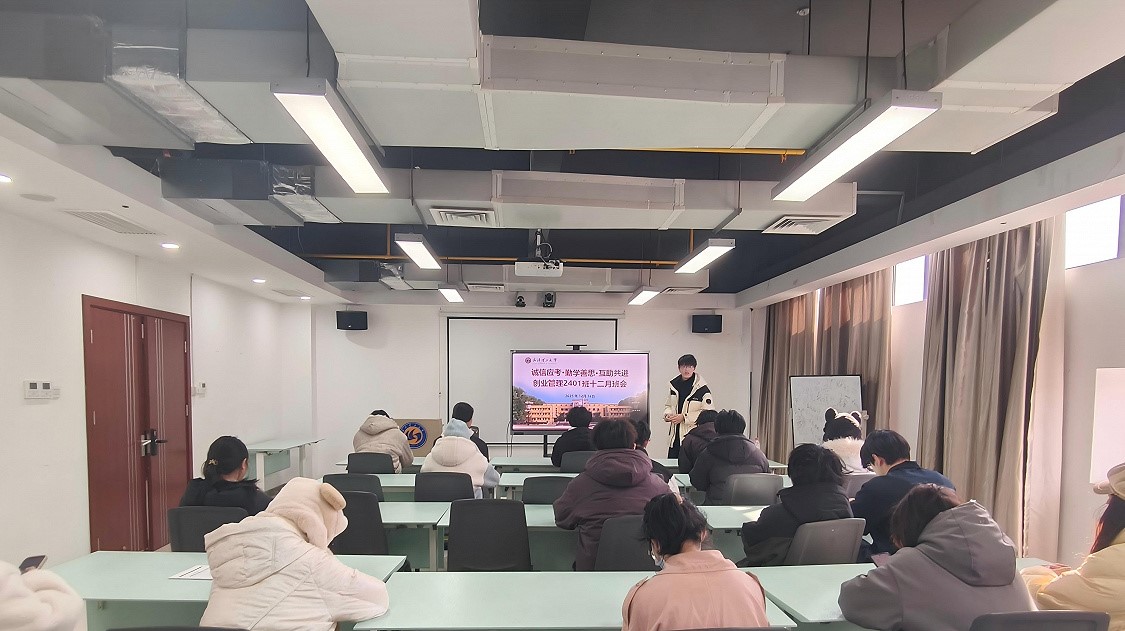 为严肃考风考纪、培育优良学风,12月14日,创管2401班以“诚信应考、互助共进”为主题开展学风建设主题班会。本次活动由班长熊梓炀主持,班级全体同学参加。