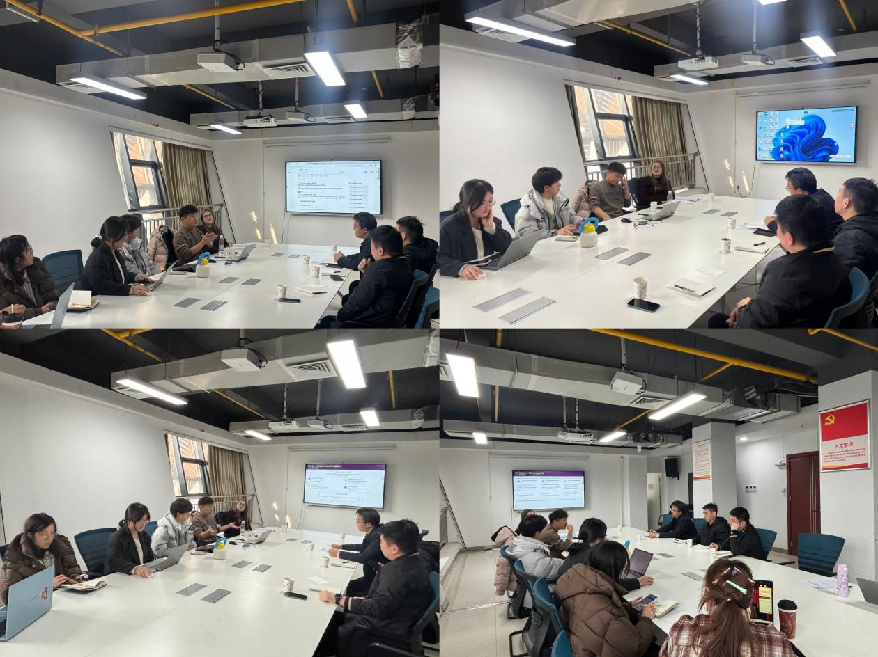 学院教师李律成、李匡郢与两位嘉宾展开了深度交流。李律成老师向Sam Zhao详细询问了新西兰高校在创业项目孵化中的实战教学模式,探讨了将其经验引入我们课堂的可能性;李匡郢老师则与Hannah Dyball深入探讨了在算法主导的商业环境中,如何保持人文关怀与商业伦理的平衡。两位老师结合自身教学科研实际,就“国际优质课程资源的引进”及“学生跨文化商业思维培养”等议题提出了建设性见解,这场跨越国界的思想碰撞为学院未来的国际化教育改革提供了新的思路。